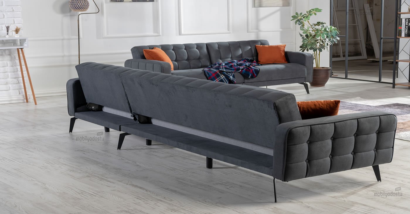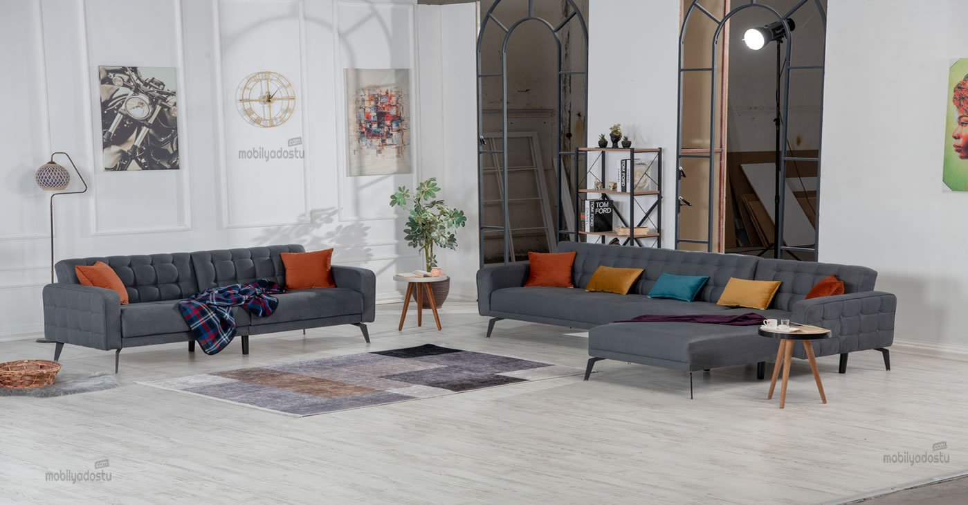Our product: It is disassembled. It comes in a box as seen in the pictures and is easy to install. It is in the form of 1 Corner 1 Sofa 1 Single Armchair. It can be designed according to the desired fabric color options. For more furniture types, you can visit our Turkey factory furniture sales site. | mobilyadostu.com | Factory production and export registration. Logistics and installation are not included in the price. | For retail sales, you can visit our online furniture sales store b11.com.tr. |