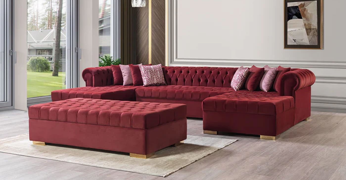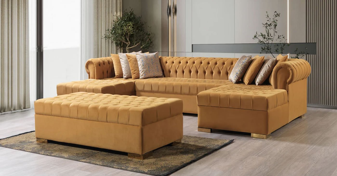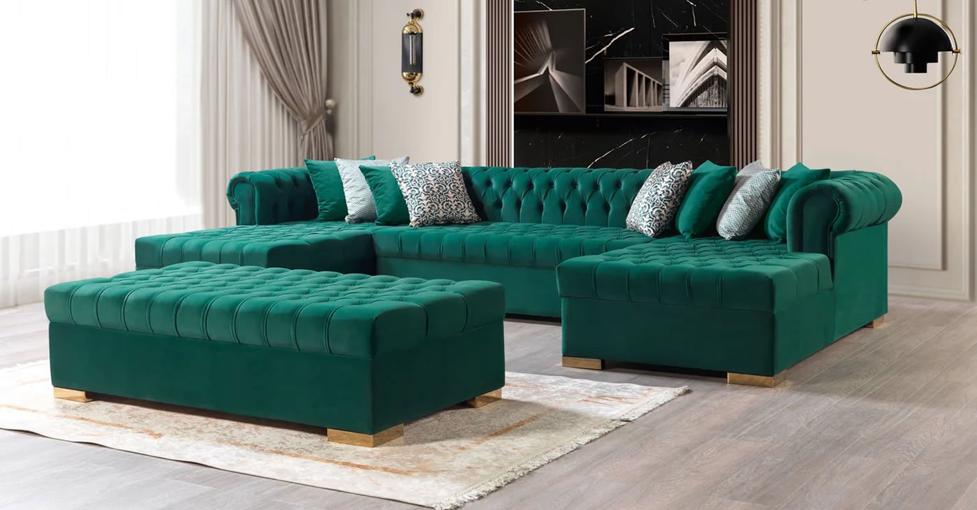 Our Product: This sectional sofa, which is completely tufted and meticulously handcrafted with attention to detail, exhibits unique craftsmanship. Fabric: Velvet, Hornbeam Plywood Frame is used. Leg Assembly Required. Dimensions: 136x69x32 | Can be designed according to the desired fabric and color options. For more furniture types, you can visit our Turkey factory furniture sales site. | mobilyadostu.com | Factory production and export registration. Logistics and installation are not included in the price. | For retail sales, you can visit our online furniture sales store b11.com.tr. | Left Corner Chaise: