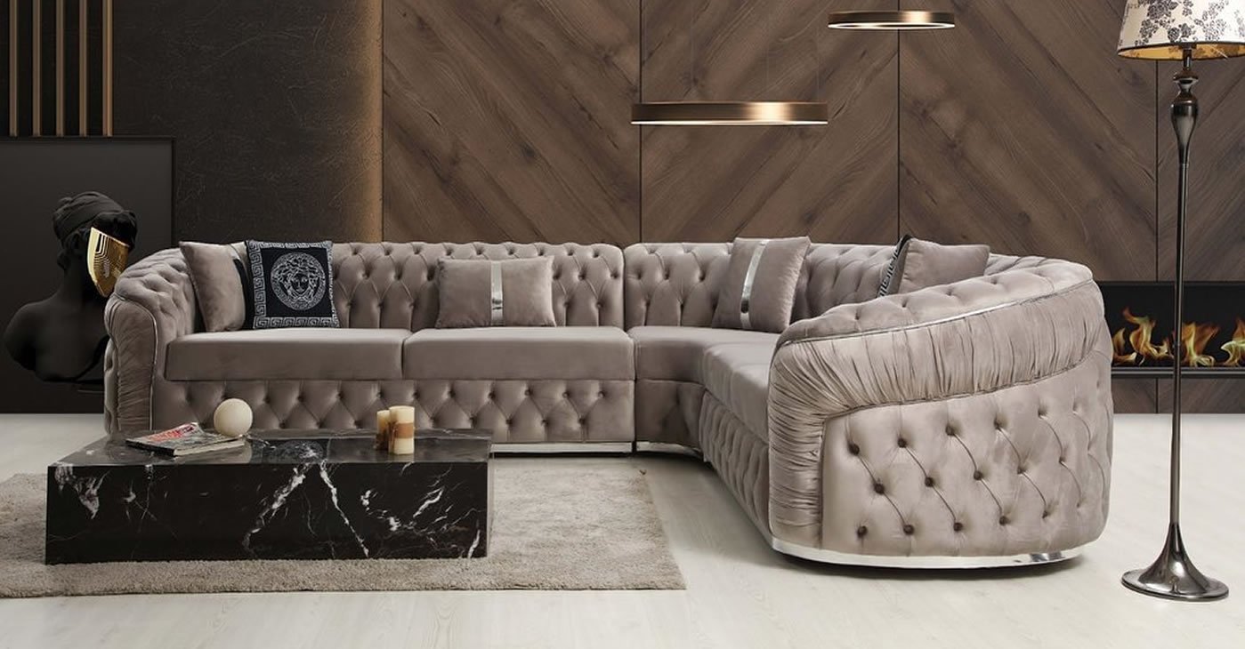 Our product: L-shaped corner sofa set. Fabric: Velvet, Hornbeam plywood frame is used. Leg assembly is required. Dimensions: 32" Y x 118" / 118" G x 41" D | Can be designed according to desired fabric and color options. For more furniture types, you can visit our Turkey factory furniture sales site. | mobilyadostu.com | Factory production and export registration. Logistics and installation are not included in the price. | For retail sales, you can visit our online furniture sales store b11.com.tr.