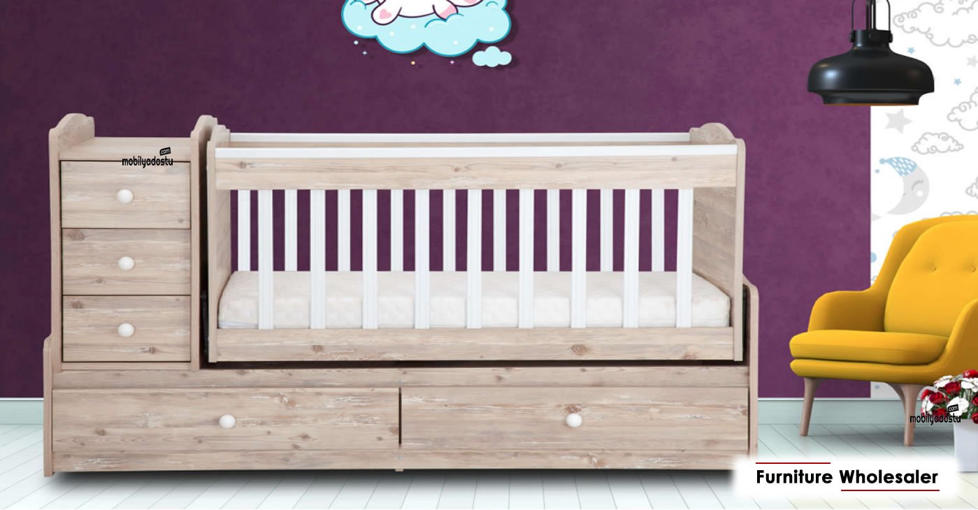 Product Detail: Upholstered Backrest - Rocking Mechanism - Made of MDF Material - Elevator Railing System - 3 Drawers - 58×116 Bed Dimensions. | Shipping and VAT are not included.